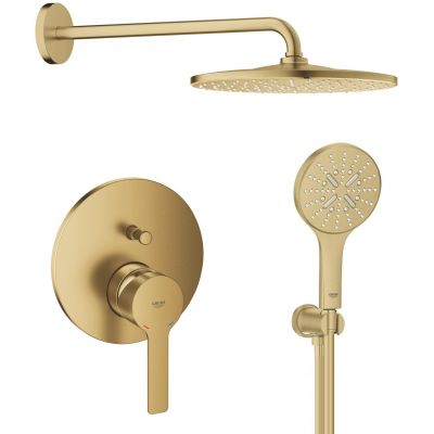 Opis zestawu Zestaw Grohe Lineare bateria wannowo-prysznicowa podtynkowa z deszczownicą i zestawem prysznicowym Brushed Cool Sunrise (24064GN1, 26558GN0, 28362GL1, 26658GN0, 26574GN0)