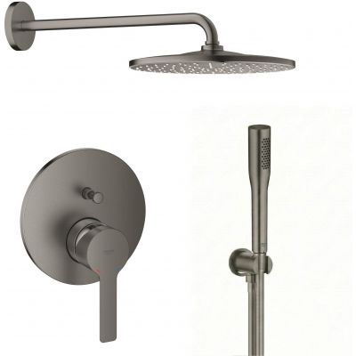 Opis zestawu Zestaw Grohe Lineare bateria wannowo-prysznicowa podtynkowa z deszczownicą i zestawem prysznicowym Brushed Hard Graphite (24064AL1,26558AL0, 28362A01, 26658AL0, 27400AL0)