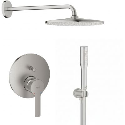 Opis zestawu Zestaw Grohe Lineare bateria wannowo-prysznicowa podtynkowa z deszczownicą i zestawem prysznicowym SuperSteel (24064DC1, 26558DC0, 28362DC1, 26658DC0, 27400DC0)
