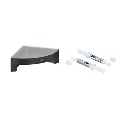 Opis zestawu Zestaw Grohe Start Cube półka prysznicowa narożna 16 cm czarna i klej montażowy QuickFix (411062430, 41128000)