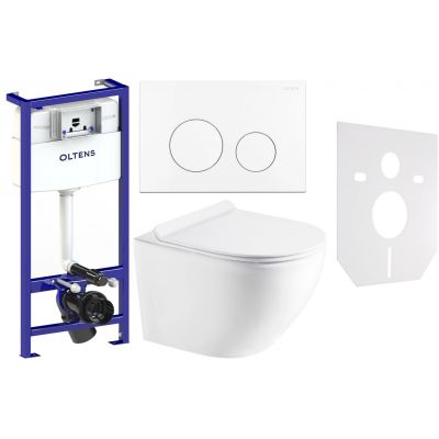 Zestaw Hagser Beno miska WC wisząca z deską wolnoopadającą i stelażem podytnkowym Oltens z uszczelką i przyciskiem spłukującym biały (HGR14000042, HGR11000045, 50001000, 57102000, 49301000)