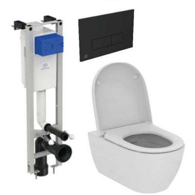 Zestaw Ideal Standard i.Life O combi-Pack miska WC z deską wolnoopadającą i stelaż podtynkowy z przyciskiem spłukującym czarnym ( E233267, T572501, R0121A6)