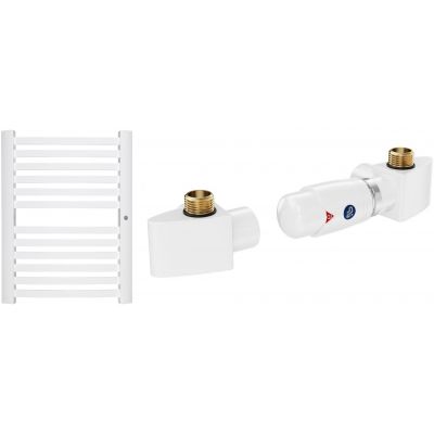 Opis zestawu Zestaw Instal Projekt Retto grzejnik łazienkowy 70,8x54 cm z zaworem termostatycznym Z17 prawym biały (RET5070, 606400001)