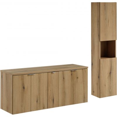 Zestaw łazienkowy SET-NOA B OAK 140CM D HC o szerokości 140cm i głębokości 40cm to doskonałe rozwiązanie dla Twojej łazienki. Zestaw składa się z 5 elementów w kolorze Dąb Coast Evoke, który dodaje elegancji i nowoczesności wnętrzu. Fronty o gładkiej strukturze tworzą spójną całość, a uchwyty w kolorze chrom połysk dodają nowoczesnego charakteru.