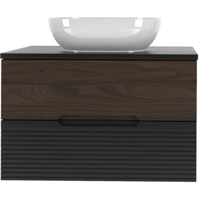 Zestaw Megstyl Avella szafka 80x45,8x50 cm podumywalkowa wisząca czarna-orzech z blatem czarnymi umywalka biała (3192, 2040, 2586)