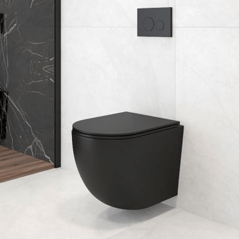 Opis zestawu Zestaw Oltens Hamnes miska WC wisząca PureRim z powłoką SmartClean z deską wolnoopadającą Ovan Slim czarny mat 42514300