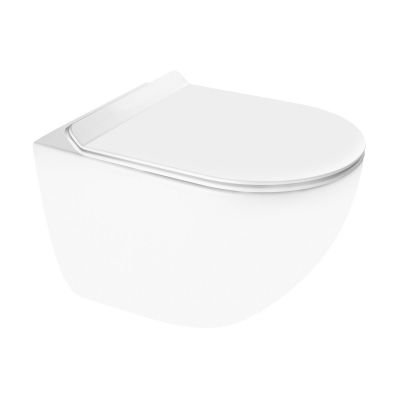 Opis zestawu Zestaw Oltens Hamnes OneForm Stille PureRim miska WC wisząca z deską wolnoopadającą biały połysk 42050000