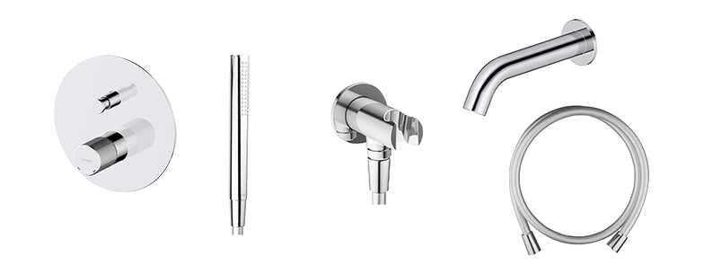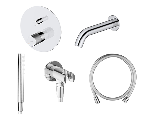| W zestawie: | bateria z przełącznikiem, wylewka wannowa, słuchawka prysznicowa, wąż prysznicowy, przyłącze kątowe |