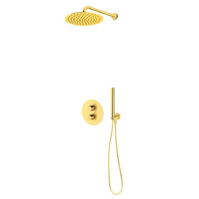 Opis zestawu Zestaw Oltens Katla bateria podtynkowa termostatyczna z deszczownicą 30 cm Vindel i kompletem prysznicowym Ume złoto szczotkowane 36608810