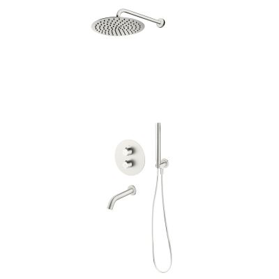 Opis zestawu Zestaw Oltens Katla bateria podtynkowa termostatyczna z wylewką wannową Molle z deszczownicą 30 cm Vindel i kompletem prysznicowym Ume nikiel 36611910