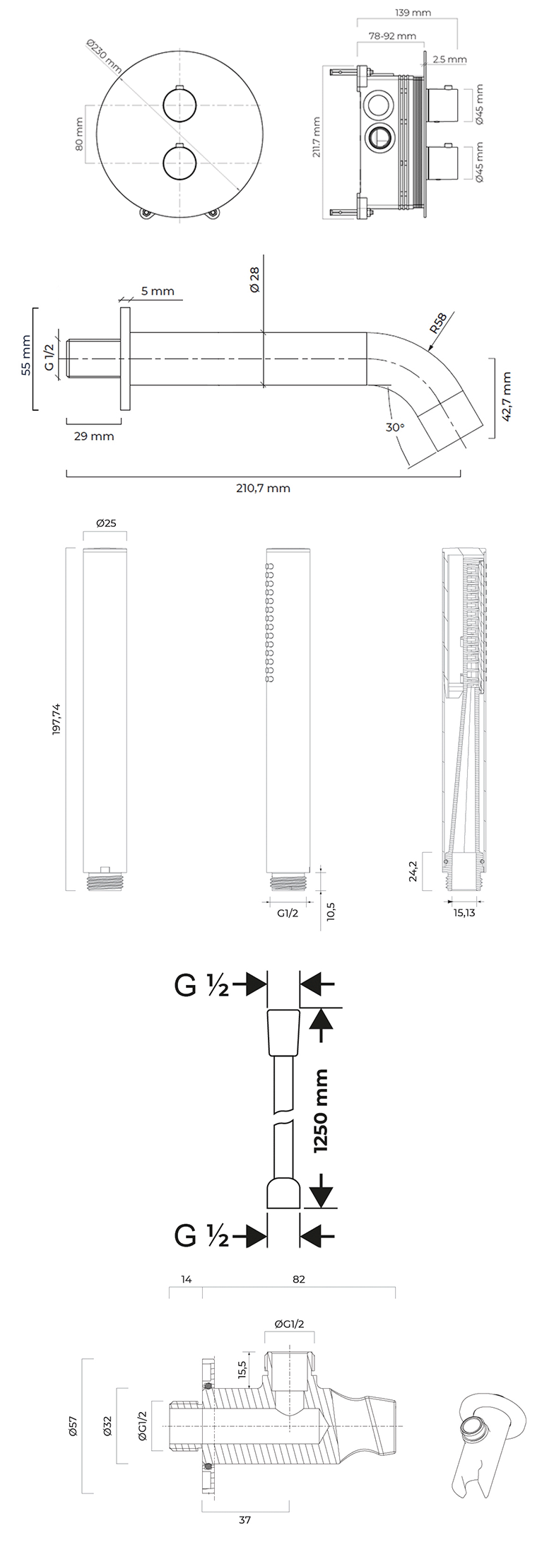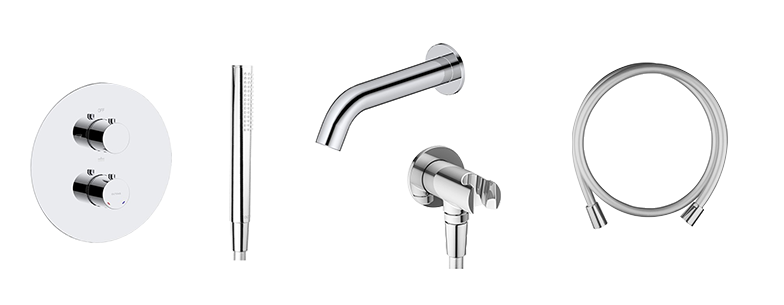 | W zestawie: | bateria z przełącznikiem, wylewka wannowa, słuchawka prysznicowa, wąż prysznicowy, przyłącze kątowe |