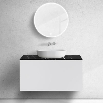 Zestaw Oltens Lun szafka podumywalkowa 100 cm wisząca z blatem Tera biały mat/czarny marmur 68704000