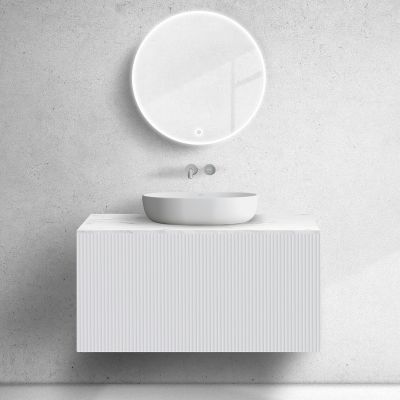 Zestaw Oltens Lun szafka podumywalkowa 100 cm wisząca z blatem Tera biały mat/jasny marmur 68700000