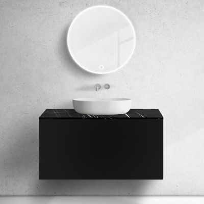 Zestaw Oltens Lun szafka podumywalkowa 100 cm wisząca z blatem Tera czarny mat/czarny marmur 68704300