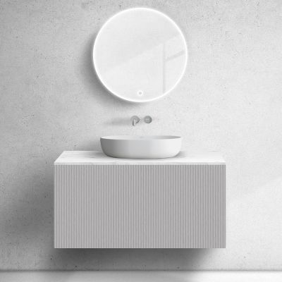 Zestaw Oltens Lun szafka podumywalkowa 100 cm wisząca z blatem Tera kaszmir/jasny marmur 68700900