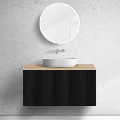 Zestaw Oltens Lun szafka podumywalkowa 100 cm z blatem czarny mat/dąb 68689300