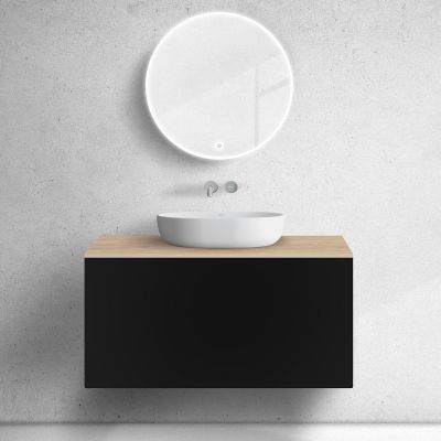 Zestaw Oltens Lun szafka podumywalkowa 100 cm z blatem czarny mat/dąb 68693300