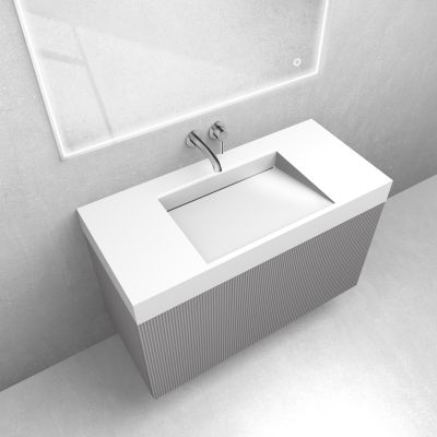 Opis zestawu Zestaw Oltens Lun szafka podumywalkowa 100 cm z umywalką Stila LavaForm kaszmir/biały połysk 68792900