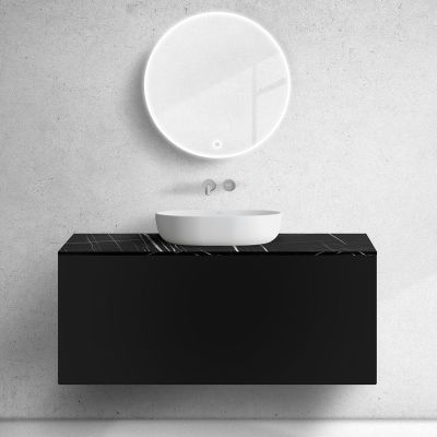 Zestaw Oltens Lun szafka podumywalkowa 120 cm wisząca z blatem Tera czarny mat/czarny marmur 68705300