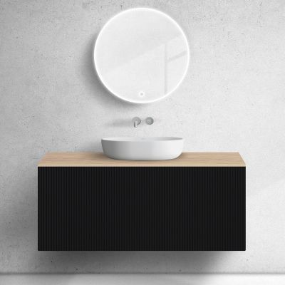 Zestaw Oltens Lun szafka podumywalkowa 120 cm z blatem czarny mat/dąb 68690300