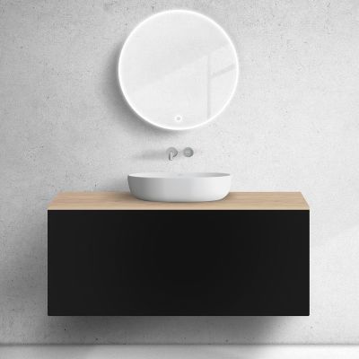 Zestaw Oltens Lun szafka podumywalkowa 120 cm z blatem czarny mat/dąb 68694300