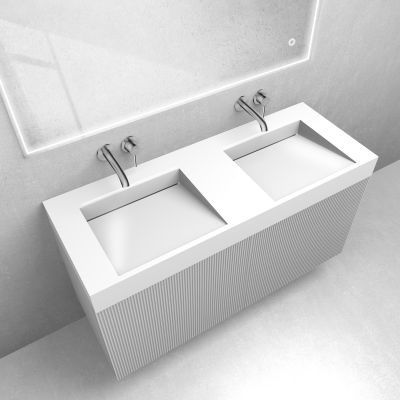 Zestaw Oltens Lun szafka podumywalkowa 120 cm z umywalką Stila LavaForm biały mat/biały połysk 68794000
