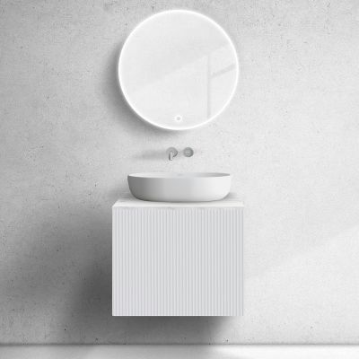 Opis zestawu Zestaw Oltens Lun szafka podumywalkowa 60 cm wisząca z blatem Tera biały mat/jasny marmur 68698000