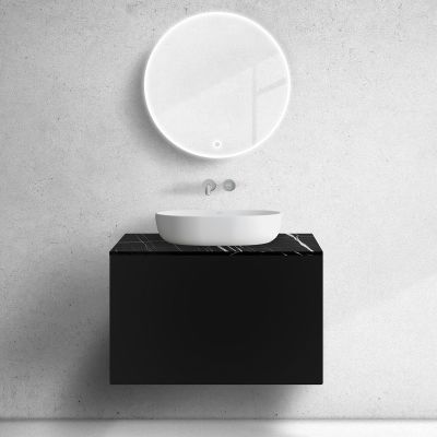 Zestaw Oltens Lun szafka podumywalkowa 80 cm wisząca z blatem Tera czarny mat/czarny marmur 68703300