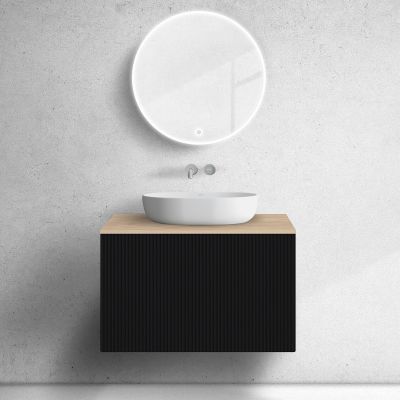 Zestaw Oltens Lun szafka podumywalkowa 80 cm z blatem czarny mat/dąb 68688300