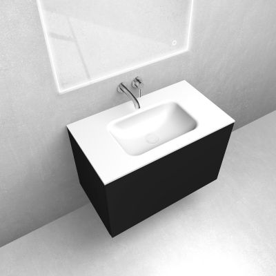 Opis zestawu Zestaw Oltens Lun szafka podumywalkowa 80 cm z umywalką Kalla LavaForm czarny mat/biały połysk 68782300