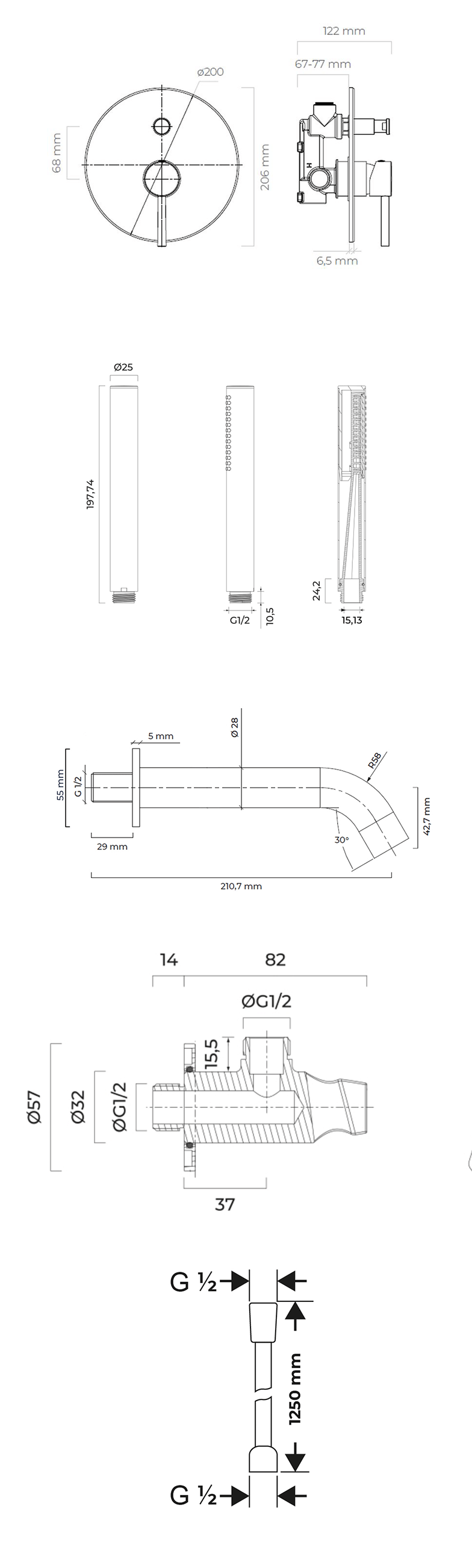| W zestawie: | bateria z przełącznikiem, wylewka wannowa, słuchawka prysznicowa, wąż prysznicowy, przyłącze kątowe |