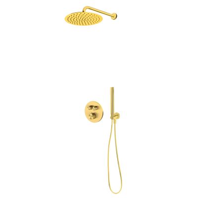 Opis zestawu Zestaw Oltens Onega bateria podtynkowa termostatyczna z deszczownicą 30 cm Vindel i kompletem prysznicowym Ume złoto szczotkowane 36617810