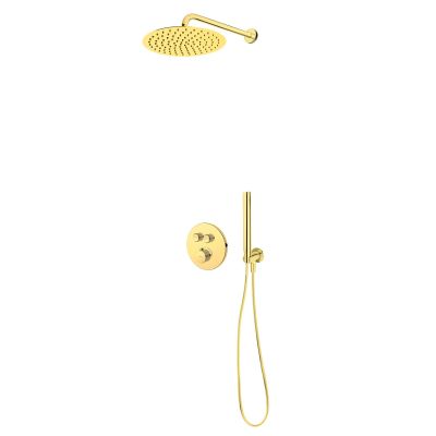 Zestaw Oltens Onega bateria podtynkowa termostatyczna z deszczownicą 30 cm Vindel i kompletem prysznicowym Ume złoty połysk 36617800
