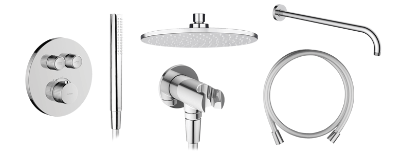 | W zestawie | bateria z przełącznikiem, deszczownica, słuchawka prysznicowa, wąż prysznicowy, ramię natrysku, przyłącze kątowe |