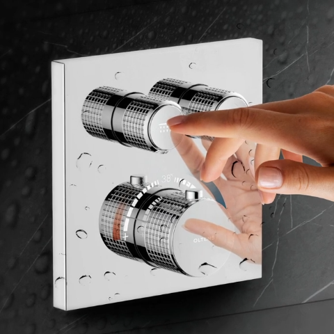 Bateria termostatyczna podtynkowa Onega marki Oltens obsługuje 2 wyjścia wody za pomocą przycisków funkcyjnych. Przyciski mają również dodatkową funkcję kontroli przepływu wody, dzięki czemu możesz ograniczyć zużycie wody. Użytkownicy mogą wybrać pożądany efekt kąpieli pod prysznicem, po prostu klikając przycisk sterujący i zwiększając/zmniejszając natężenie przepływu wody. Naciskając obydwa przyciski, można jednocześnie cieszyć się prysznicem z obydwoma funkcjami (np. deszczownicą i słuchawką prysznicową). Dzięki zastosowanej głowicy termostatycznej marki Sedal użytkownicy mogą cieszyć się prysznicem przy stałej temperaturze wody. W ofercie baterii serii Onega dostępne są okrągłe i kwadratowe wzory osłon przednich, które użytkownik może wybrać tak, aby najlepiej pasowały do jego łazienki.