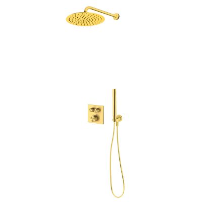 Opis zestawu Zestaw Oltens Onega (S) bateria podtynkowa termostatyczna z deszczownicą 30 cm Vindel i kompletem prysznicowym Ume złoto szczotkowane 36620810