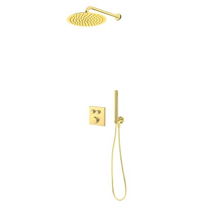 Zestaw Oltens Onega (S) bateria podtynkowa termostatyczna z deszczownicą 30 cm Vindel i kompletem prysznicowym Ume złoty połysk 36620800
