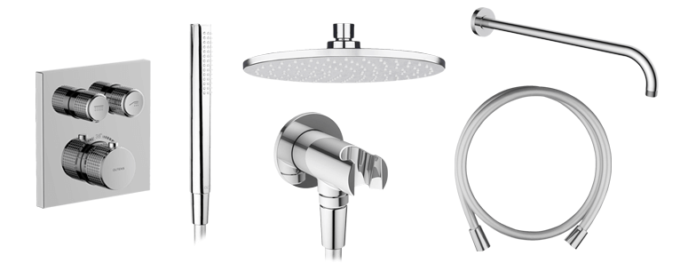 | W zestawie: | bateria z przełącznikiem, deszczownica, słuchawka prysznicowa, wąż prysznicowy, ramię natrysku, przyłącze kątowe |
