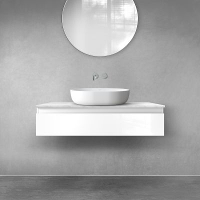 Zestaw Oltens Vernal szafka 100 cm podumywalkowa wisząca z blatem Tera biały połysk/jasny marmur 68708000