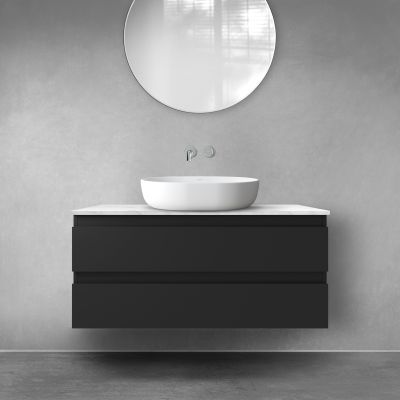 Zestaw Oltens Vernal szafka 100 cm podumywalkowa wisząca z blatem Tera czarny mat/jasny marmur 68724300