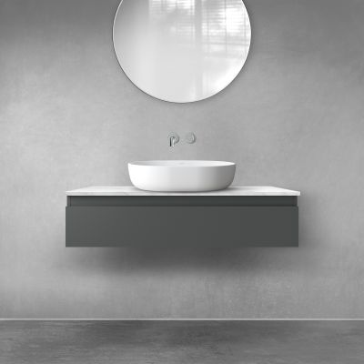 Opis zestawu Zestaw Oltens Vernal szafka 100 cm podumywalkowa wisząca z blatem Tera grafit mat/jasny marmur 68708400