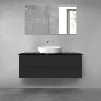 Zestaw Oltens Vernal szafka 120 cm podumywalkowa wisząca z blatem Tera czarny mat/czarny marmur 68729300