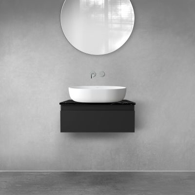Zestaw Oltens Vernal szafka 60 cm podumywalkowa wisząca z blatem Tera czarny mat/czarny marmur 68714300