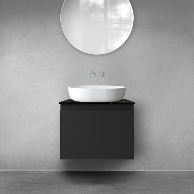 Opis zestawu Zestaw Oltens Vernal szafka 60 cm podumywalkowa wisząca z blatem Tera czarny mat/czarny marmur 68718300