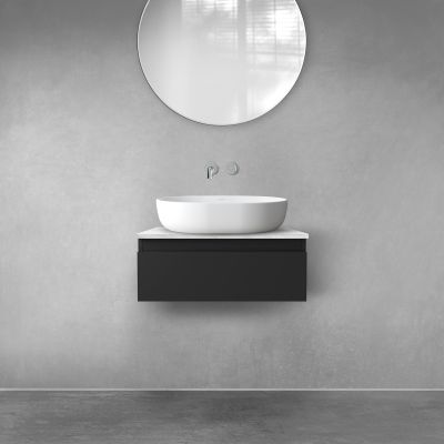 Zestaw Oltens Vernal szafka 60 cm podumywalkowa wisząca z blatem Tera czarny mat/jasny marmur 68706300