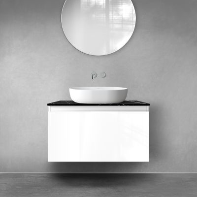 Zestaw Oltens Vernal szafka 80 cm podumywalkowa wisząca z blatem Tera biały połysk/czarny marmur 68719000