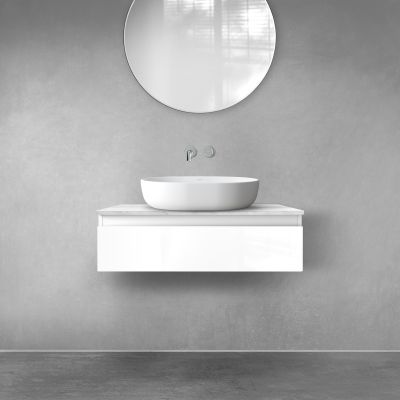 Zestaw Oltens Vernal szafka 80 cm podumywalkowa wisząca z blatem Tera biały połysk/jasny marmur 68707000