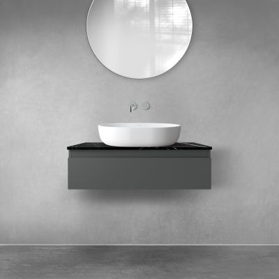 Zestaw Oltens Vernal szafka 80 cm podumywalkowa wisząca z blatem Tera grafit mat/czarny marmur 68715400