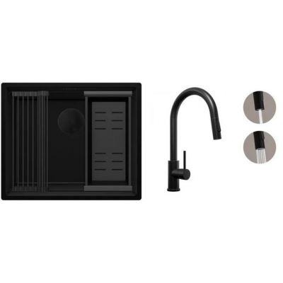 Zestaw Primagran Praga zlewozmywak granitowy i bateria kuchenna czarny (OOP6KC002, PBW9010KC)