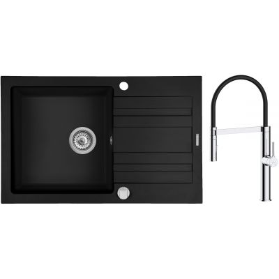 Zestaw Pyramis Naxos zlewozmywak granitowy 79x50 cm z baterią kuchenną Oltens Borga czarny mat/chrom (070174301, 35207100)